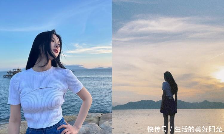 海边夕阳为背景,金裕贞穿上一身极简却充满青春感的造型。白色罗纹双层针织上衣贴合身形,展现柔软线条与干净气质,搭配高腰牛仔短裙,凸显腰身比例,让双腿显得修长笔直。以最简单的两件单品,勾勒出清新自然的秋日轮廓,随着微风轻拂发梢,整体氛围既有少女的气息,又带成熟自信的韵味,完美诠释了属于金裕贞的秋季浪漫。